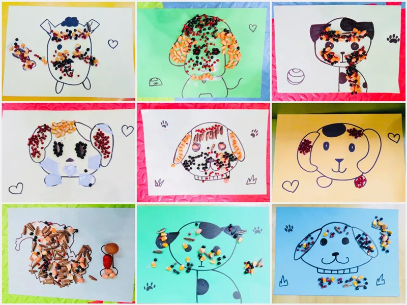 萌娃狗年豆子画作品展示。