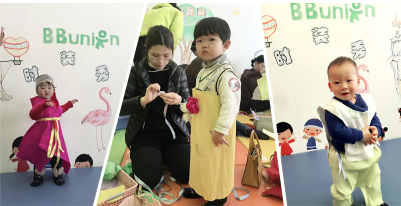 即使是最平凡的材料,在宝妈手中也是别样的艺术,看到简单的材料在宝妈宝爸灵巧的双手中翻转变成身上精美的艺术品,萌萌哒的宝宝们自然安静的配合着爸爸妈妈完成这“别具一格的创作”。有时候艺术很简单,艺术就是宝妈宝爸还有宝宝们难得安静的在音乐下面完成一件细致的手工时装。