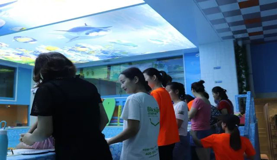 家长们和BBunion的Abby老师在旁边一直给宝宝们加油打气,帮助宝宝克服下水前的恐惧。
