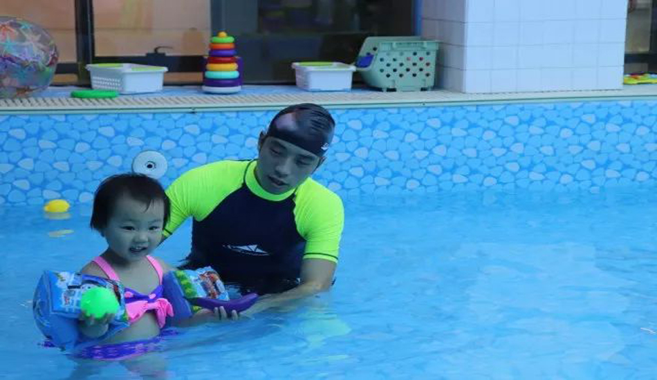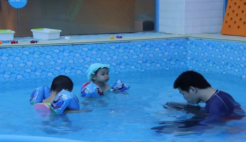 老师让宝贝们慢慢熟悉水温和水感,宝宝们对水已经没有恐惧感啦